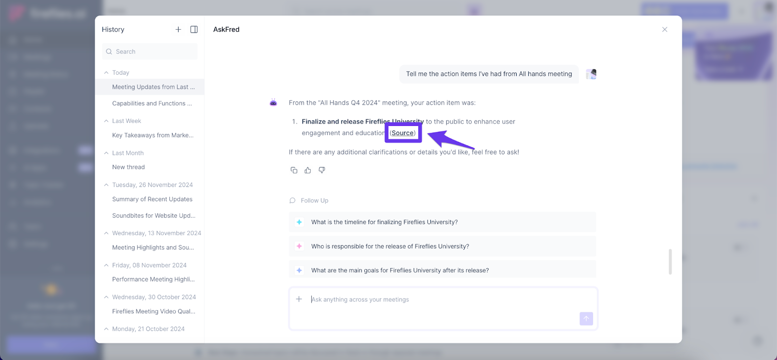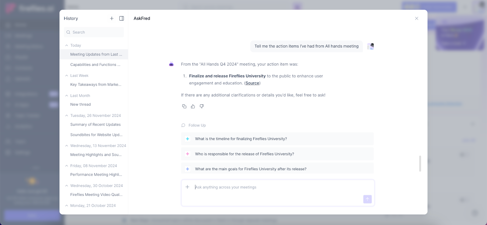 This guide gives an overview of how to use AskFred to answer questions across all meetings.