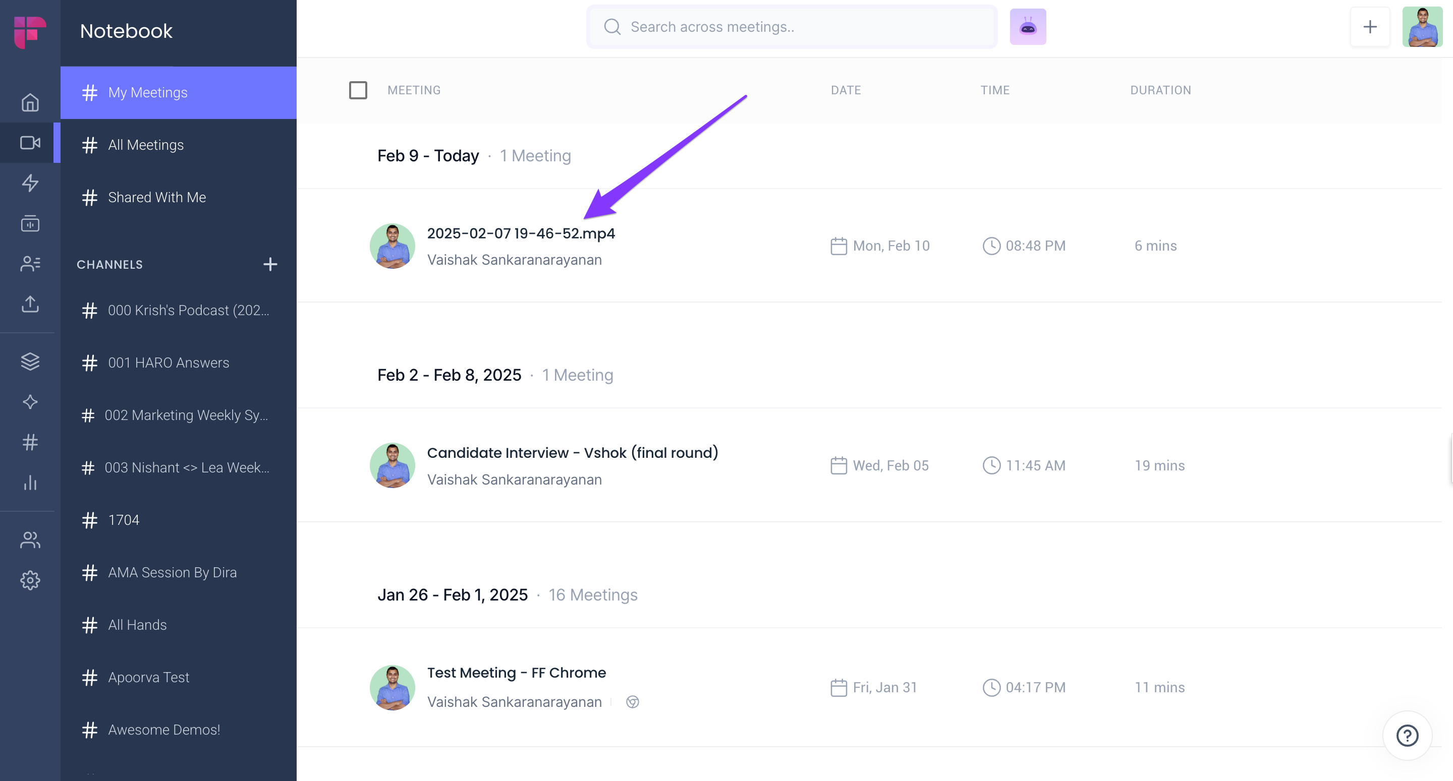 You can transcribe previous meeting recordings using the Fireflies web app.