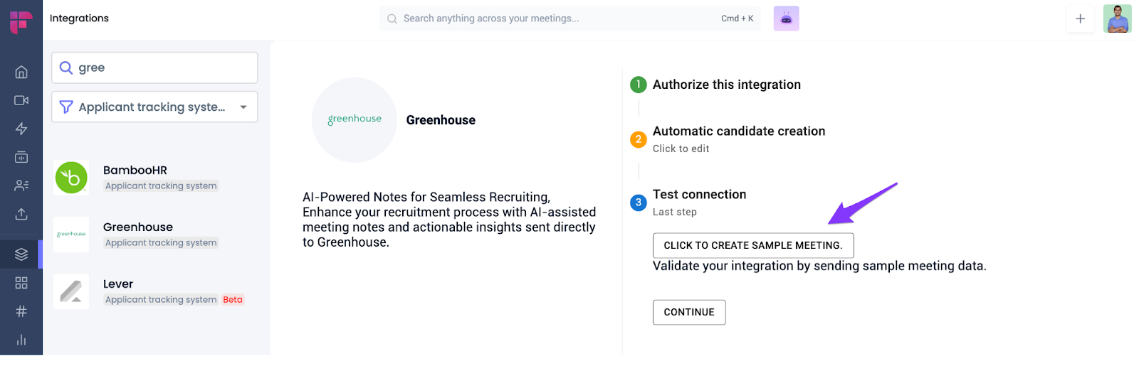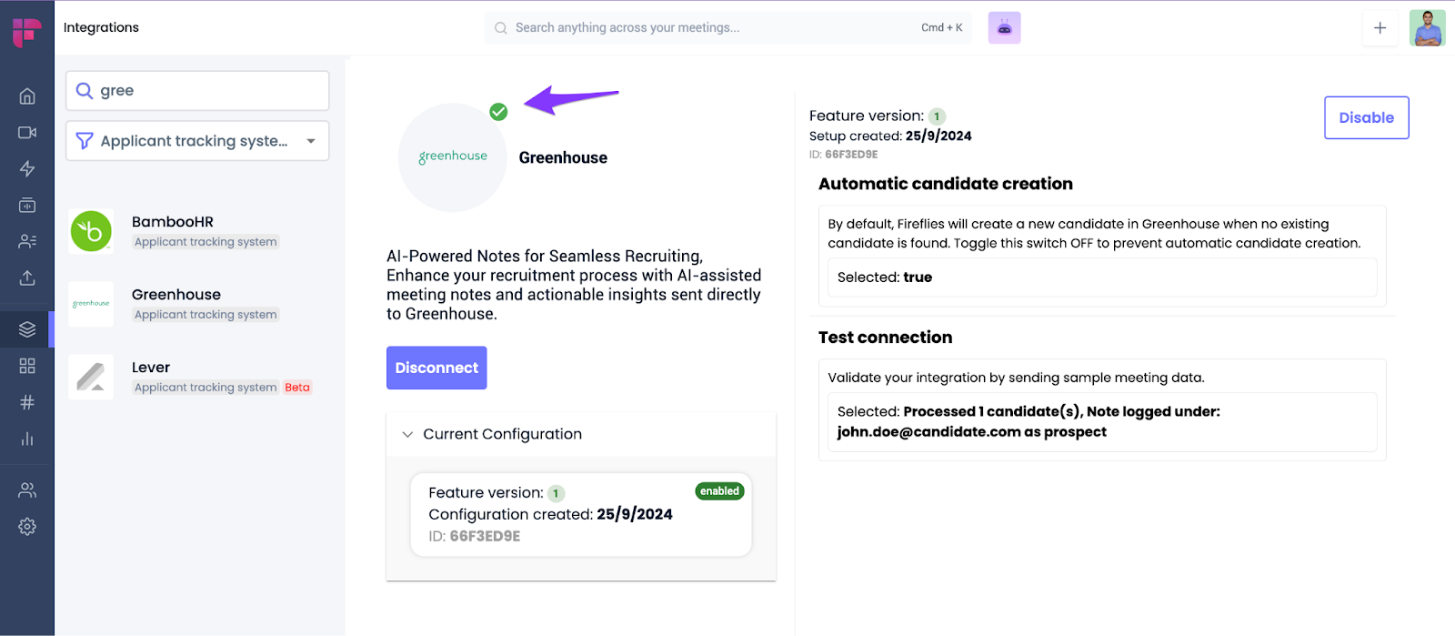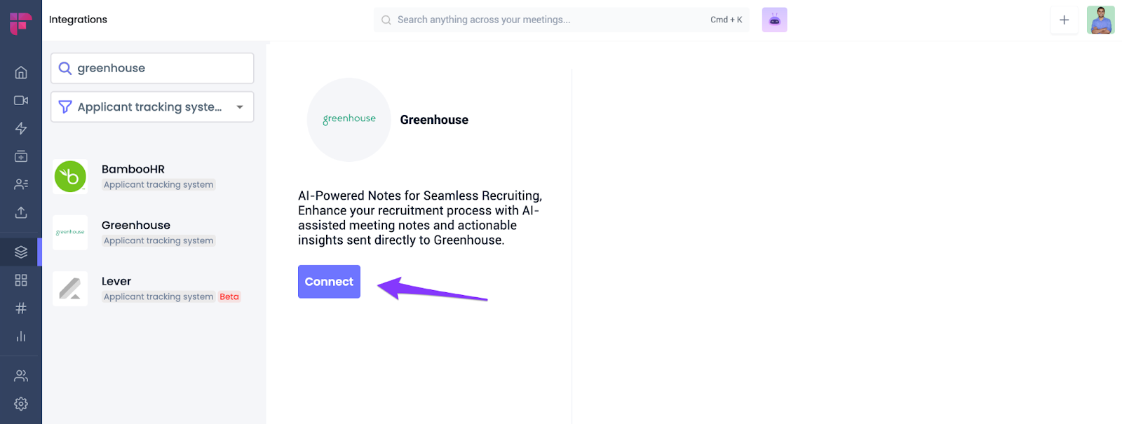Fireflies Greenhouse integration automatically sends meeting data and summaries to relevant candidate profiles in your Greenhouse ATS.