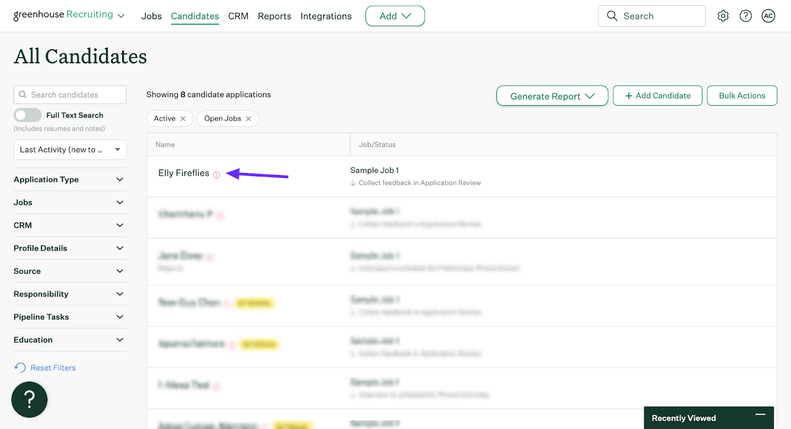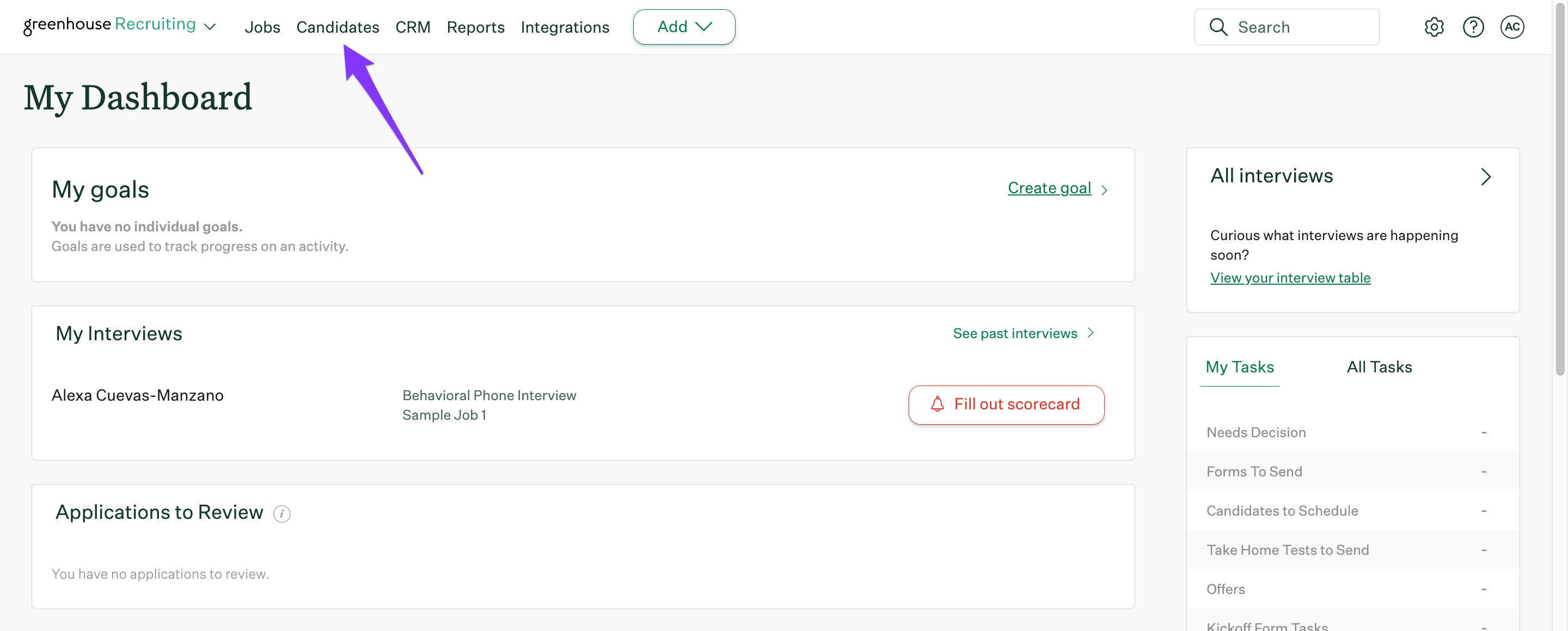 - In Greenhouse, go to the Candidates section from the main dashboard.