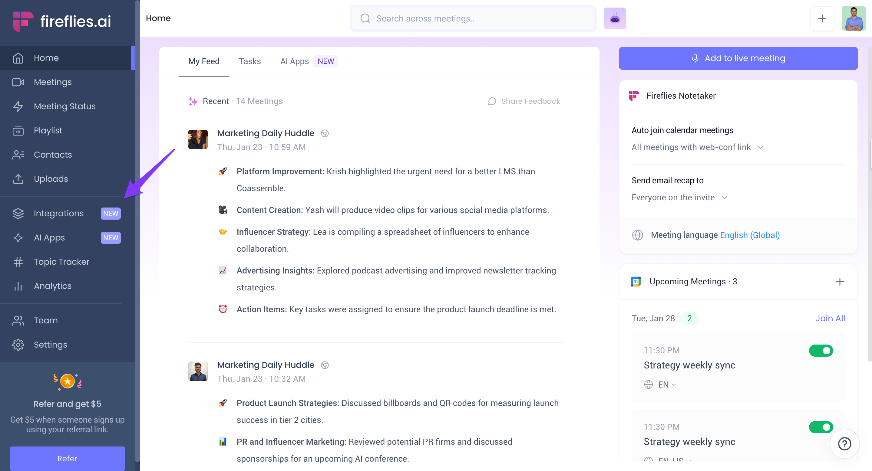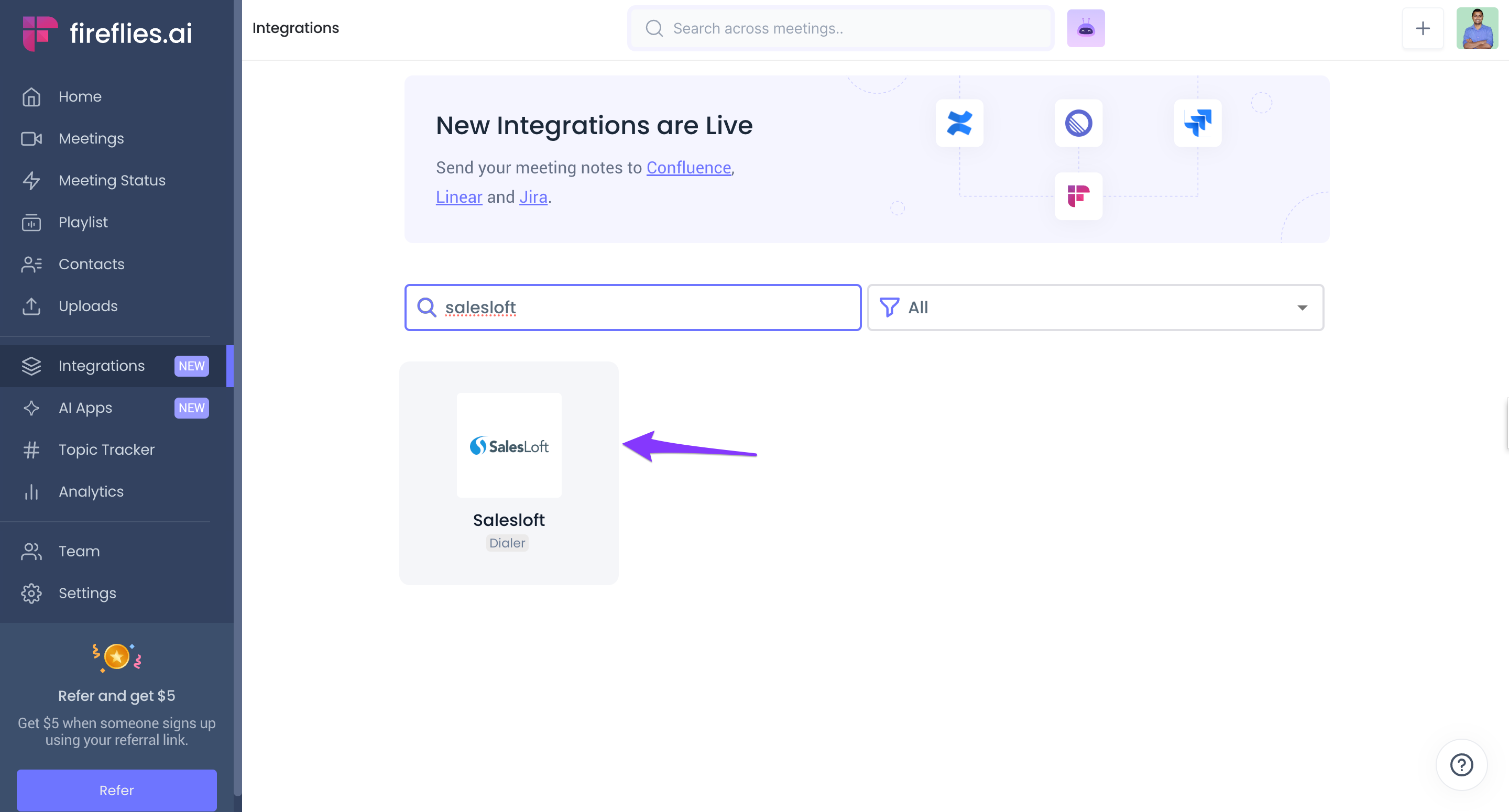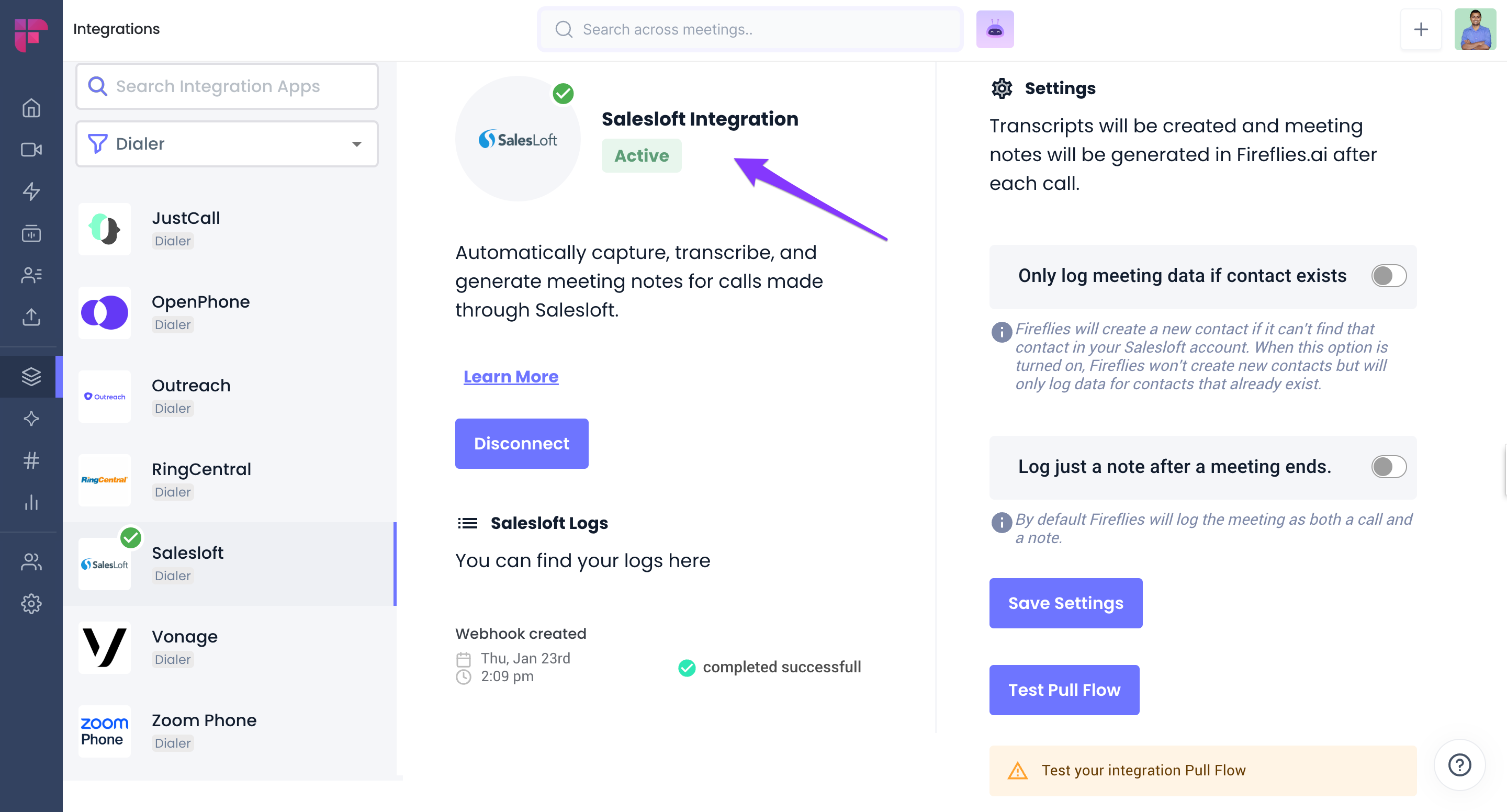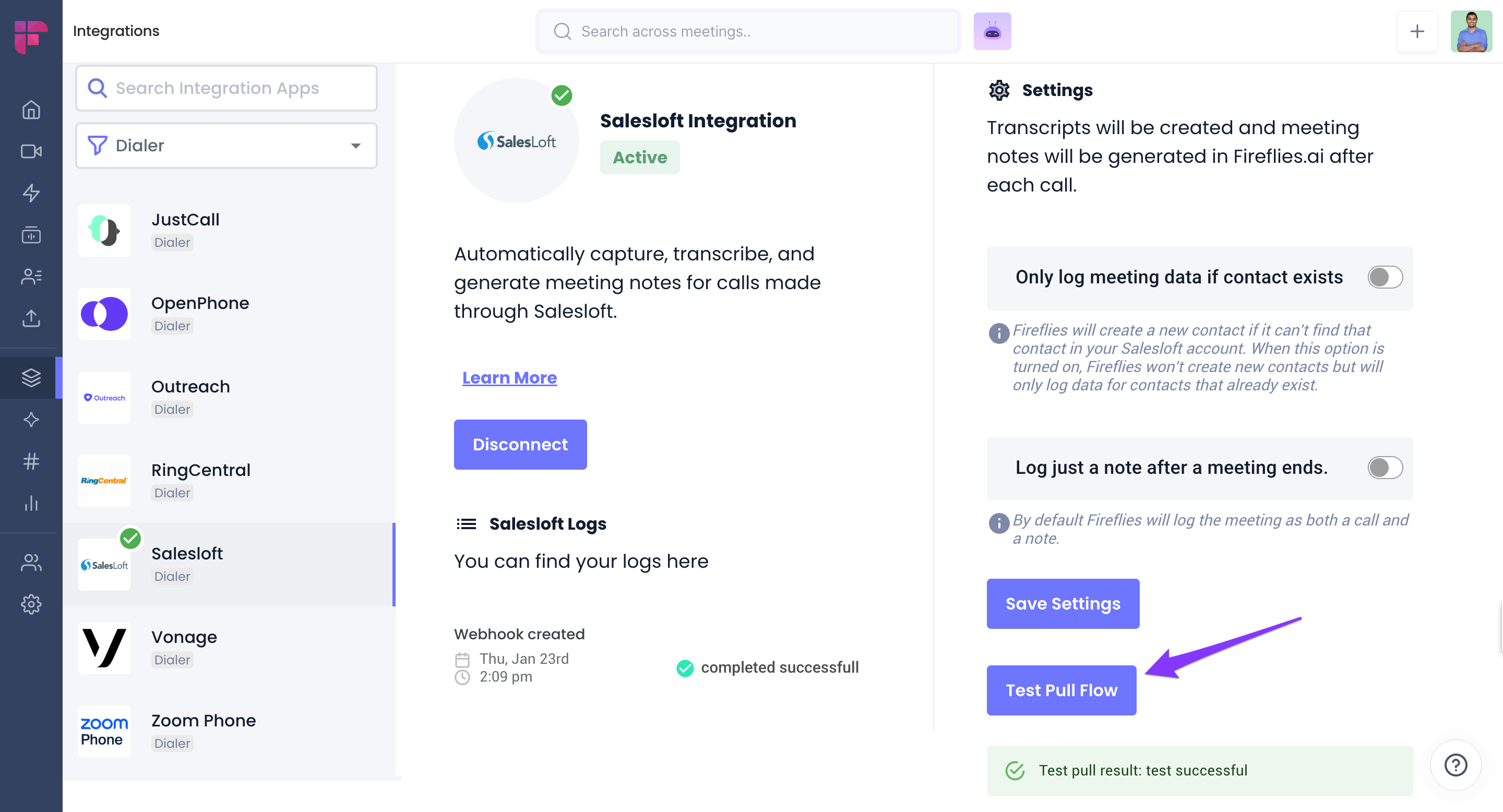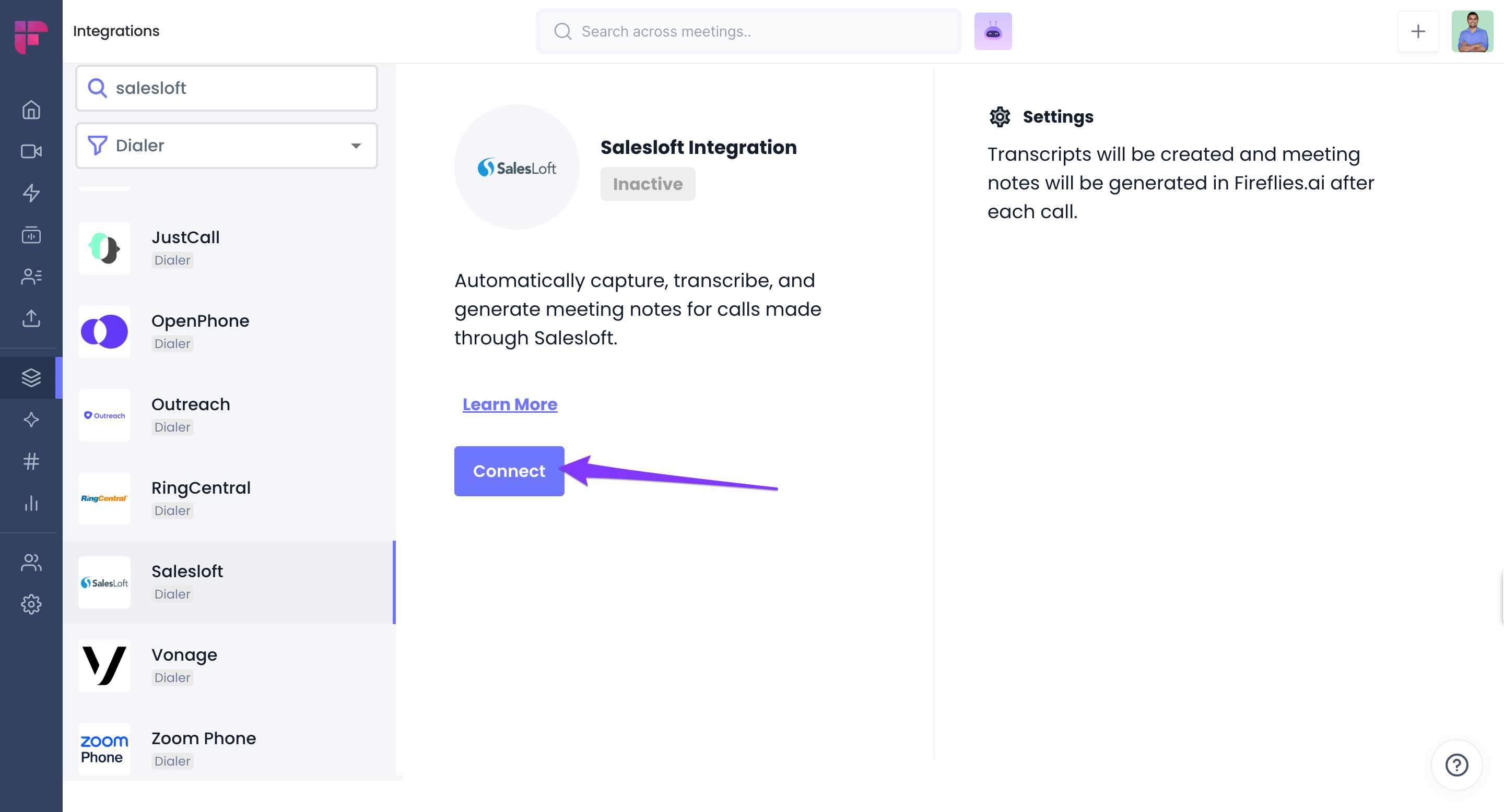 The Salesloft integration with Fireflies lets you transcribe calls made using the Salesloft dialer and access them in your Fireflies Notebook.