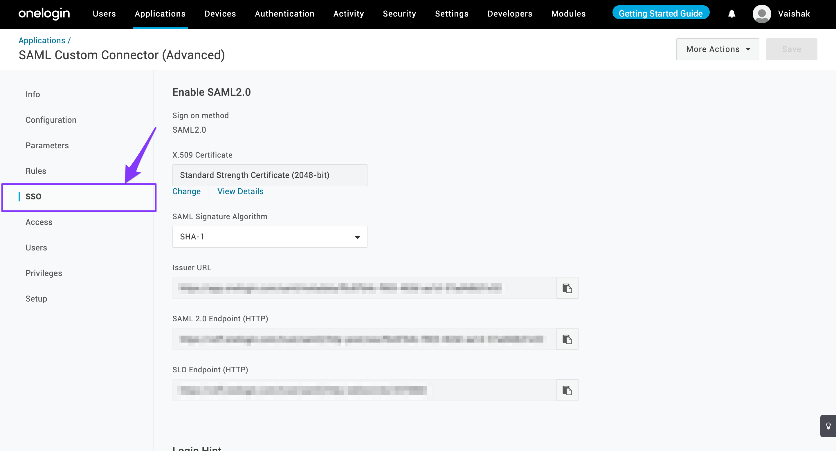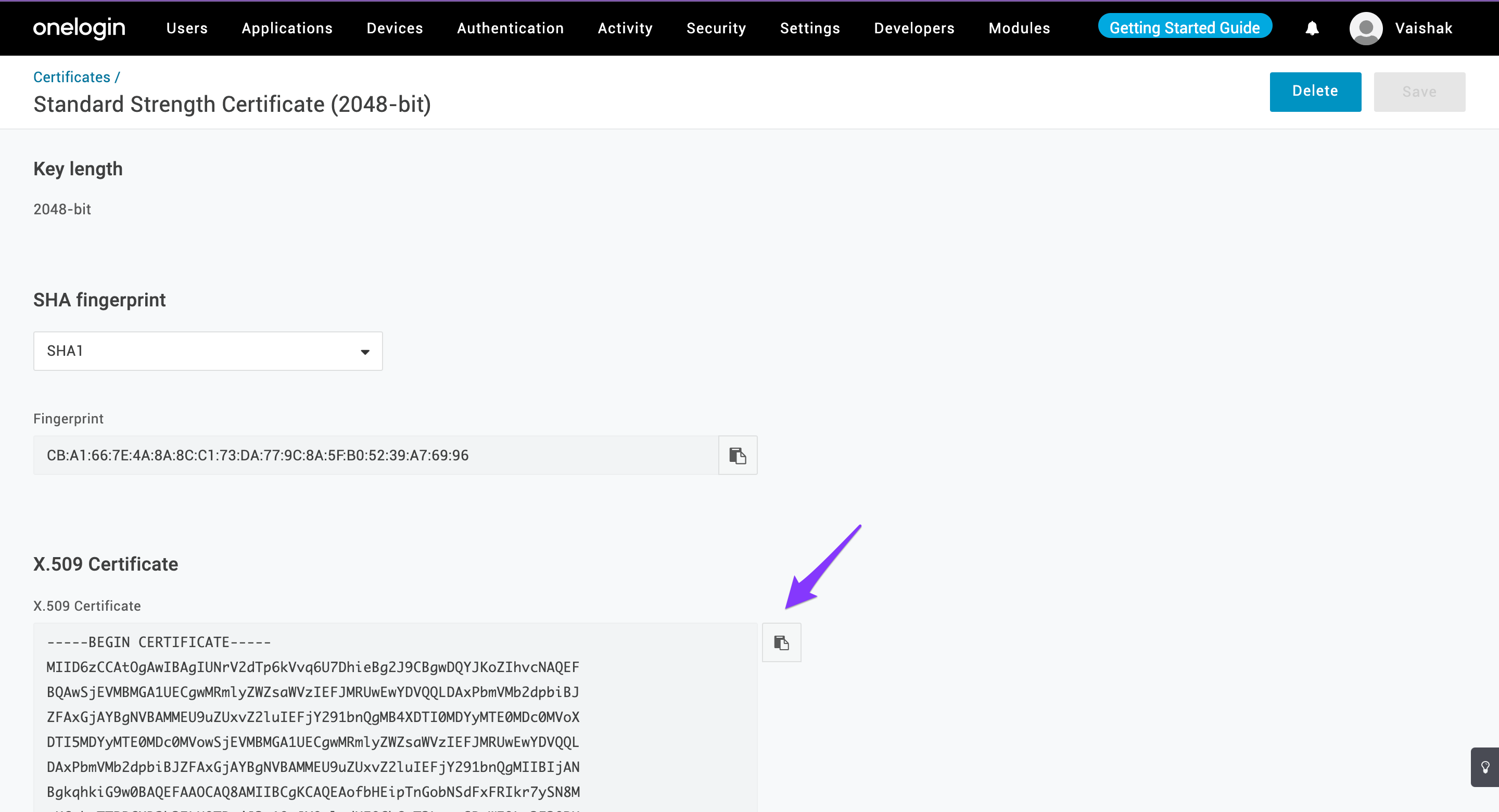 From the SSO tab, click View Details next to the X.509 Certificate.