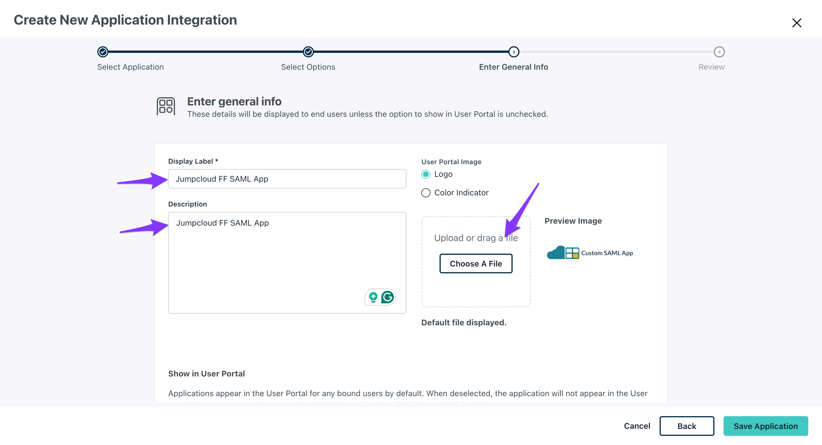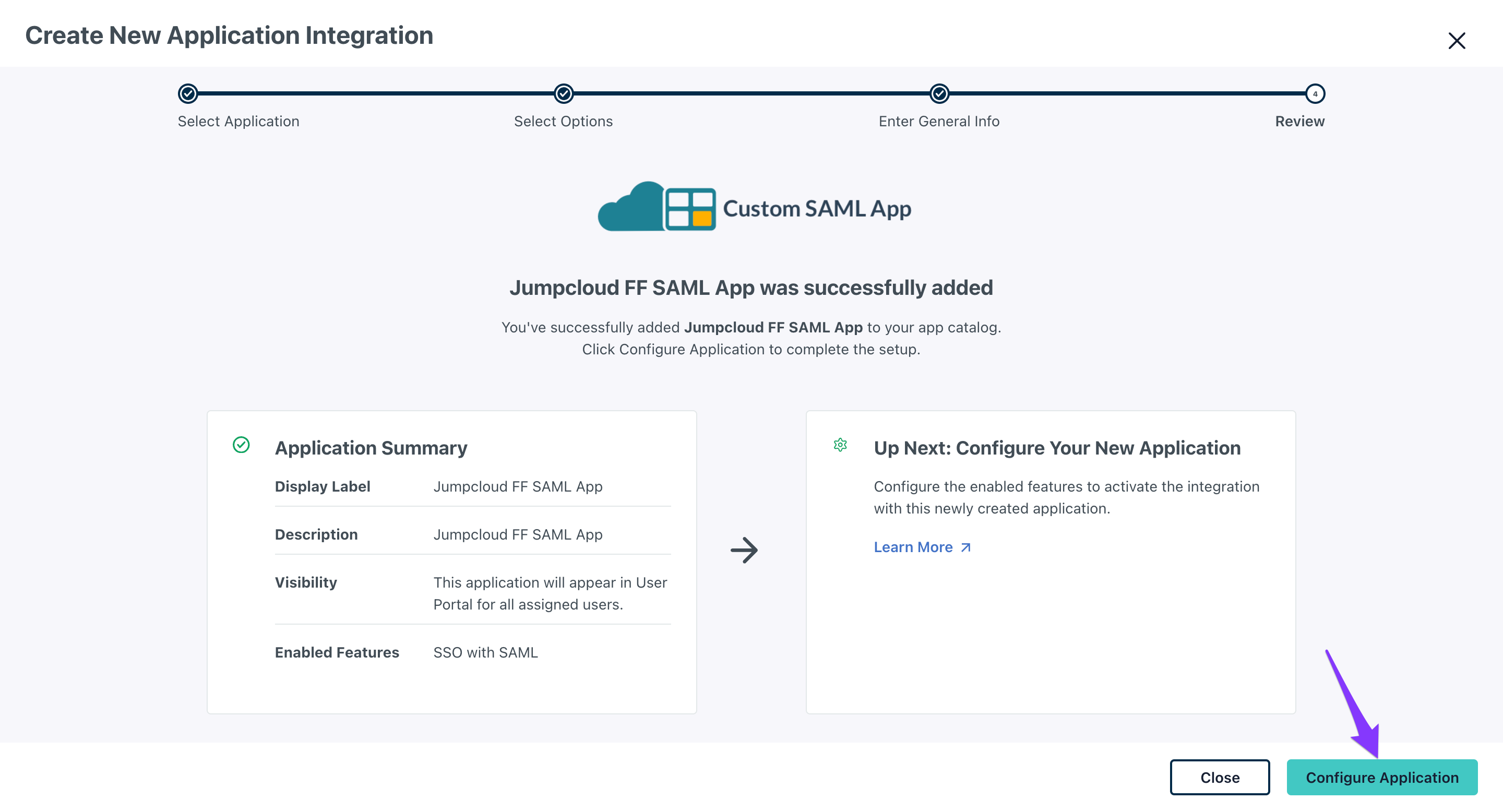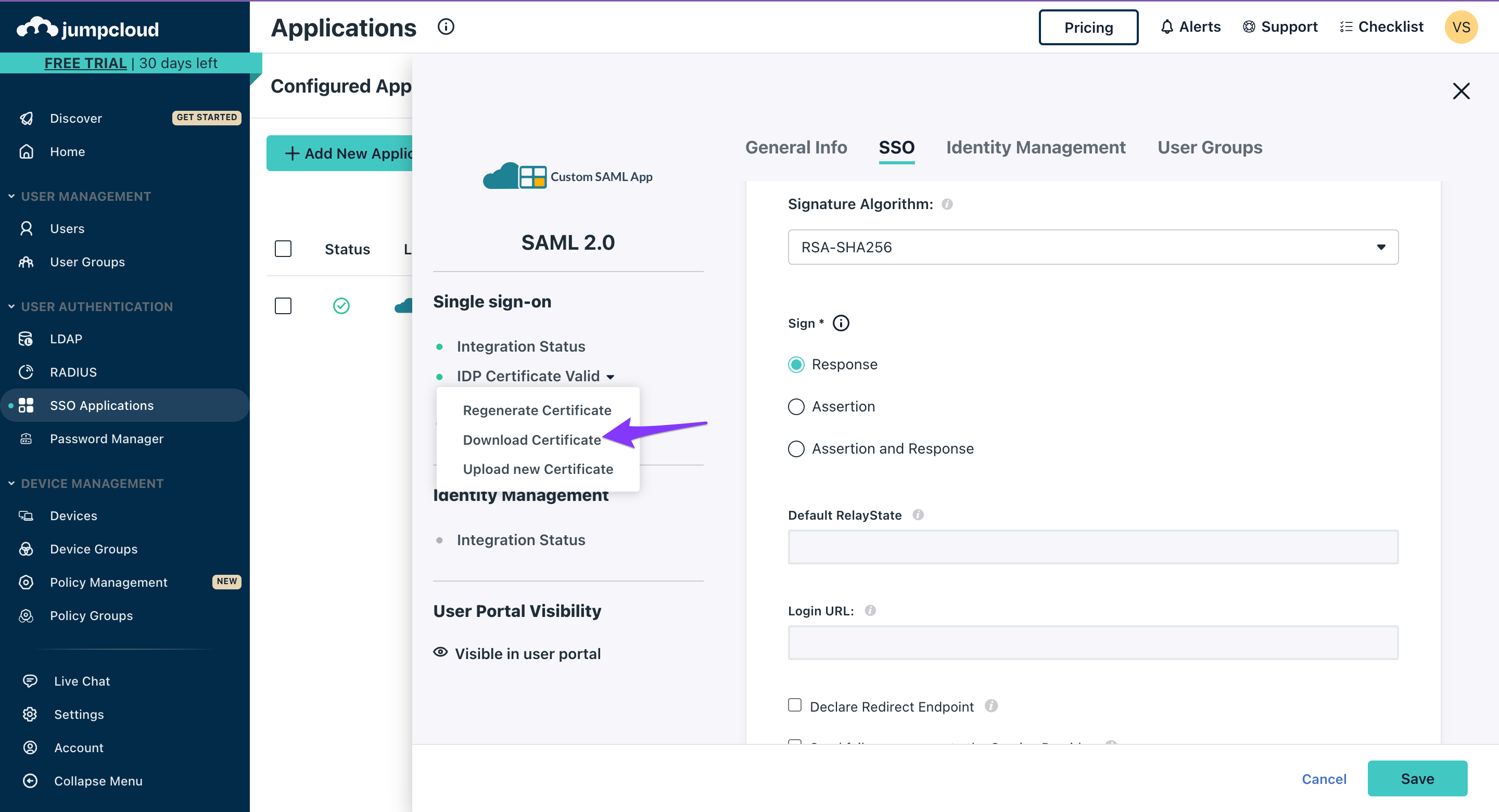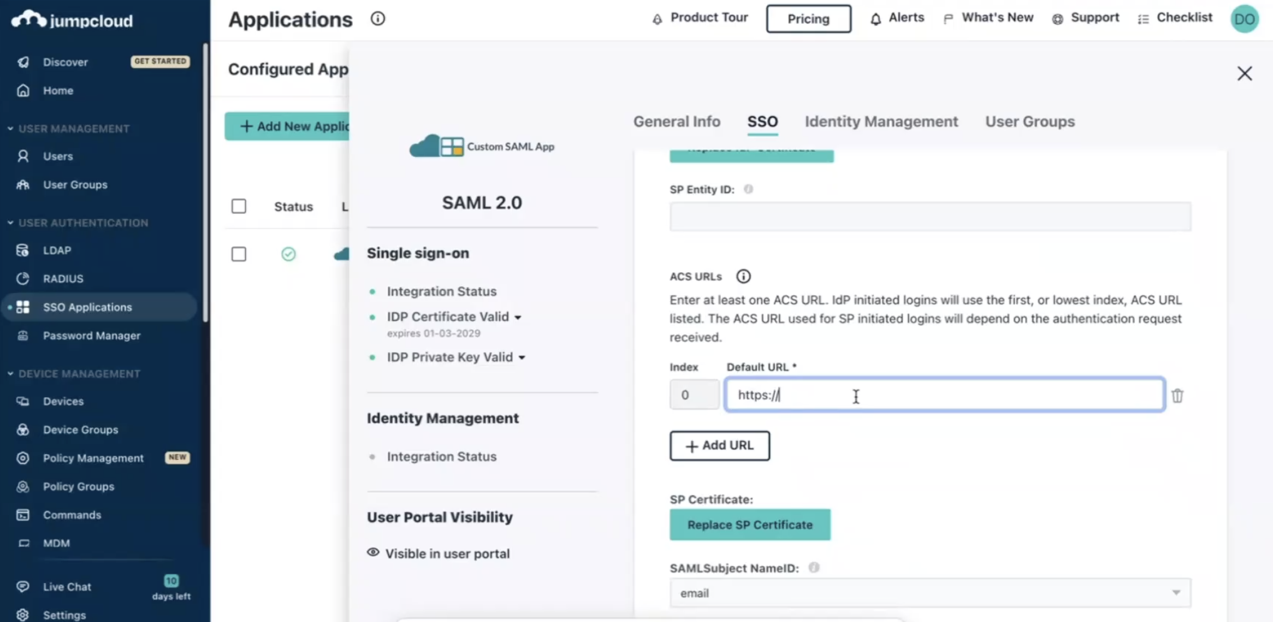 Return to Jumpcloud and input the Postback URL into the relevant field in the app configuration