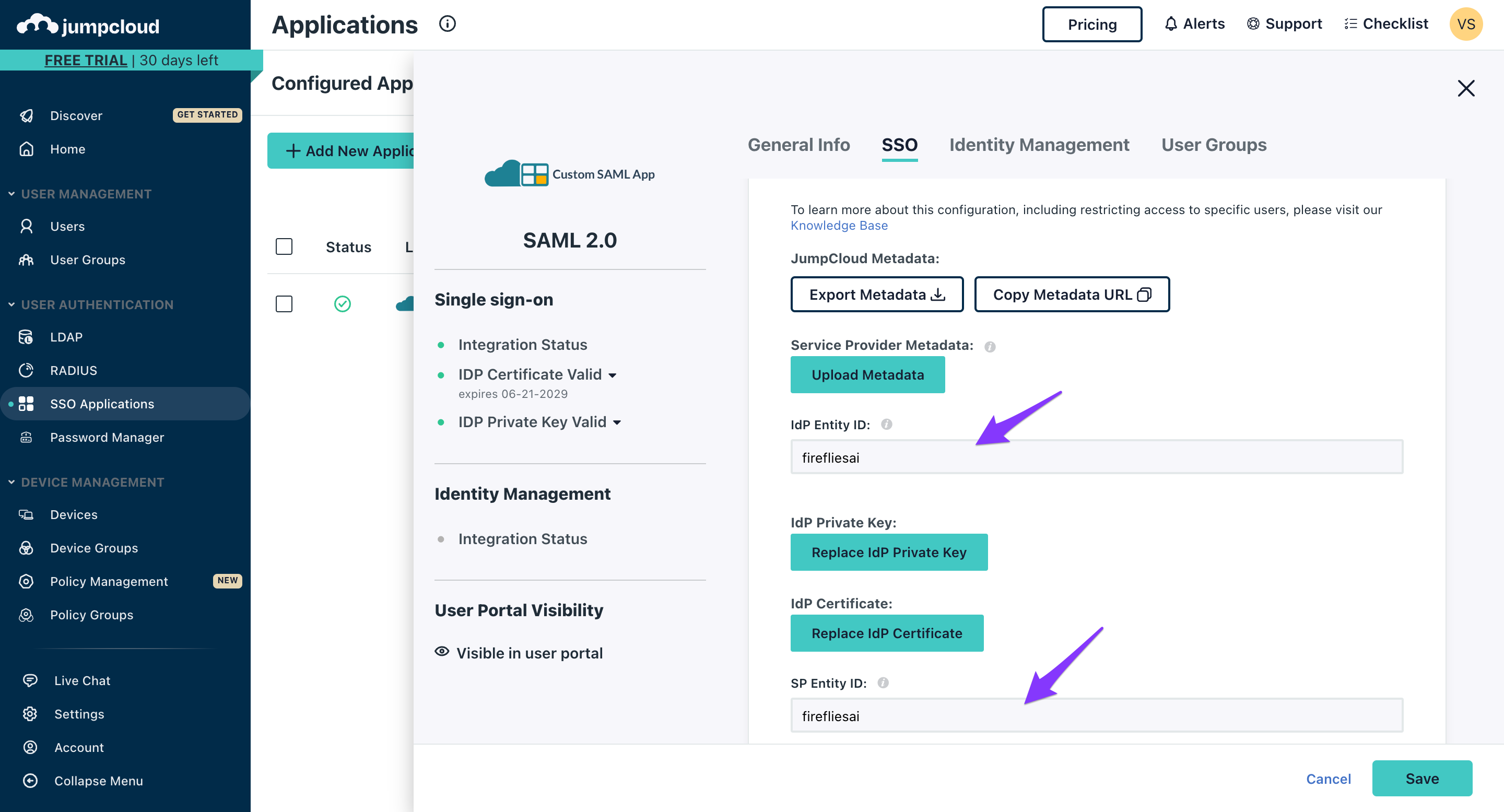 IDP URL and certificate from Jumpcloud are required for the Fireflies configuration