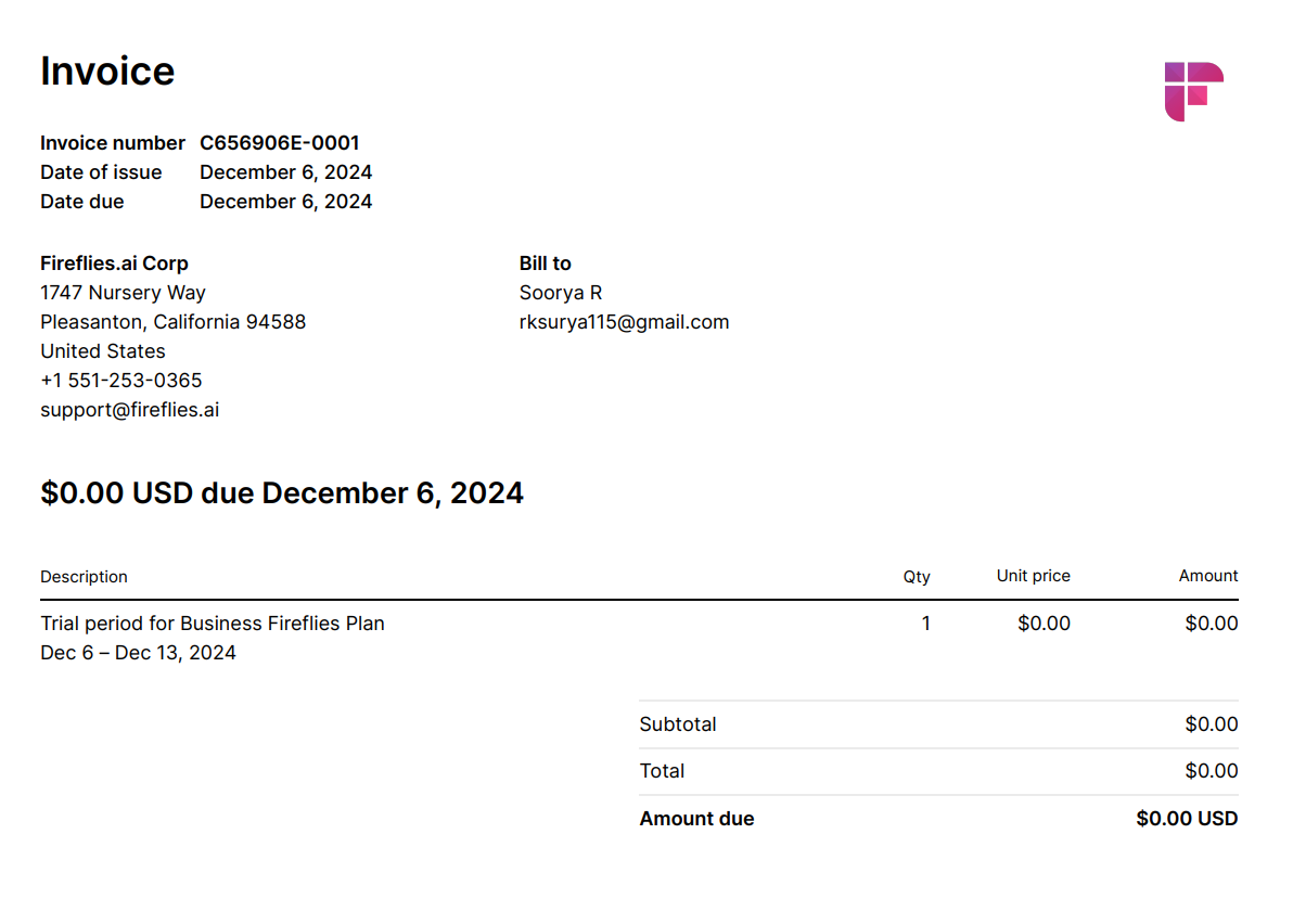 Related: How to edit billing information from the Fireflies Dashboard