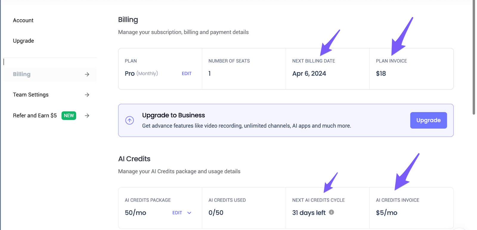 Note: Only workspace owners, Admins, and Super Admins have access to the Billing section. If you are only a member of your Team workspace, this section will not be available for you.