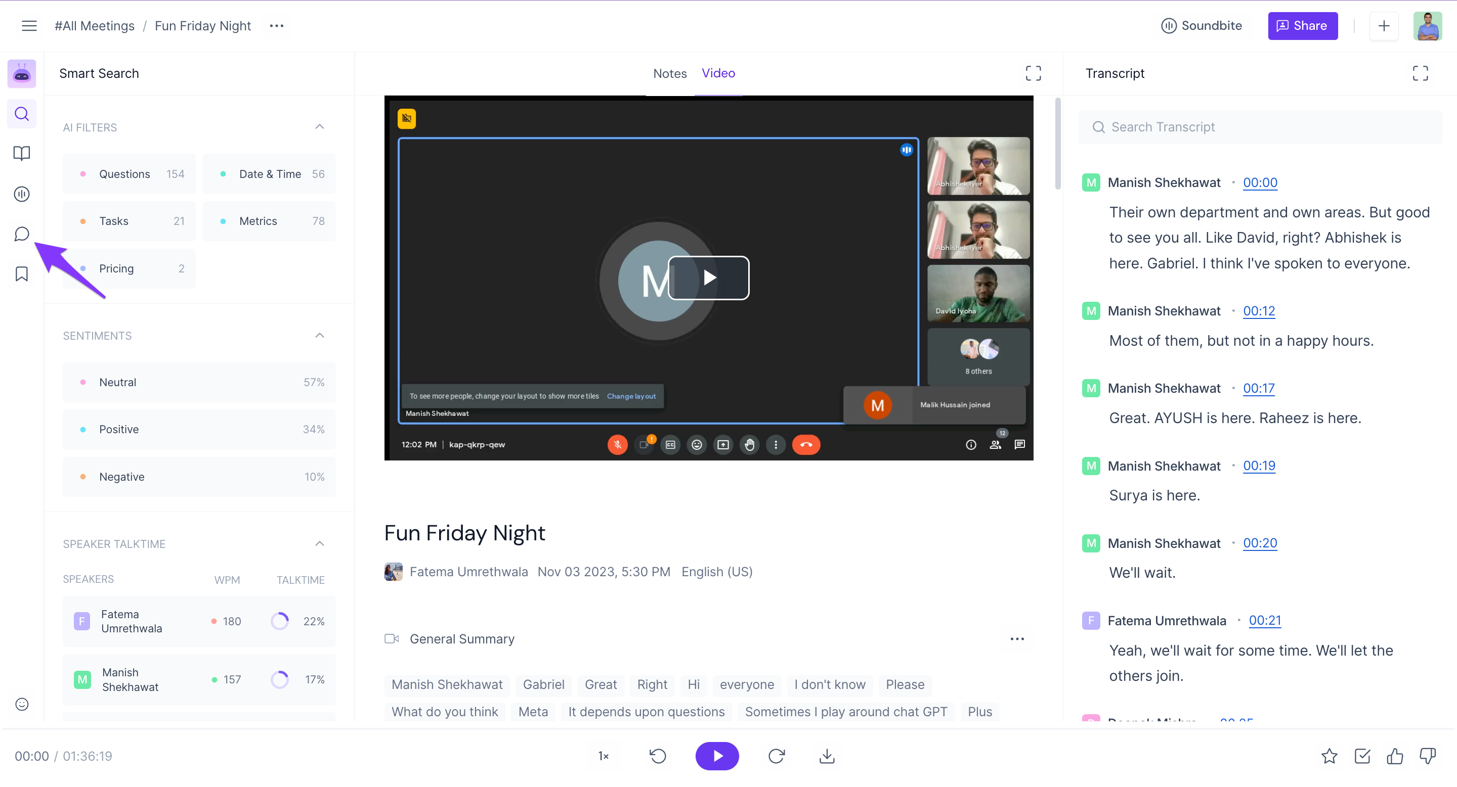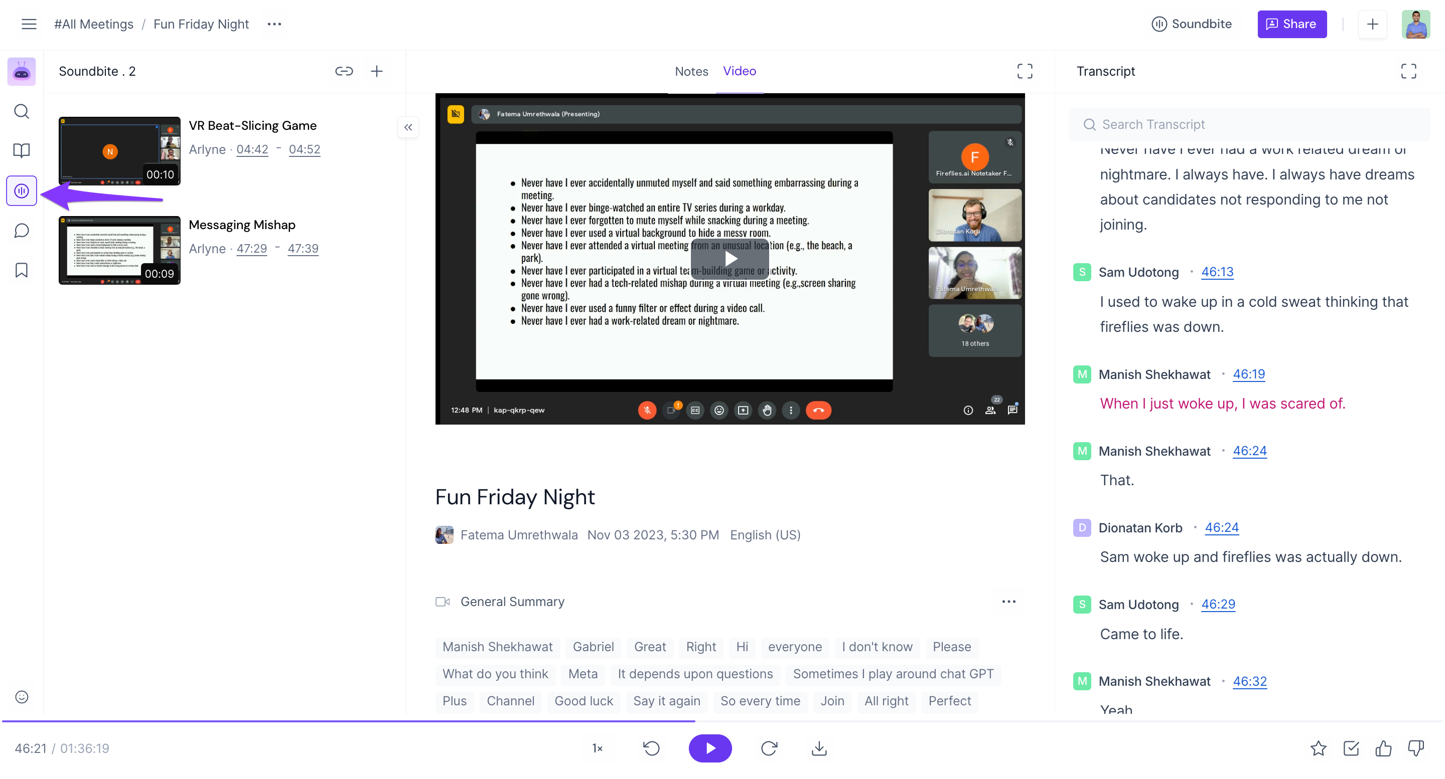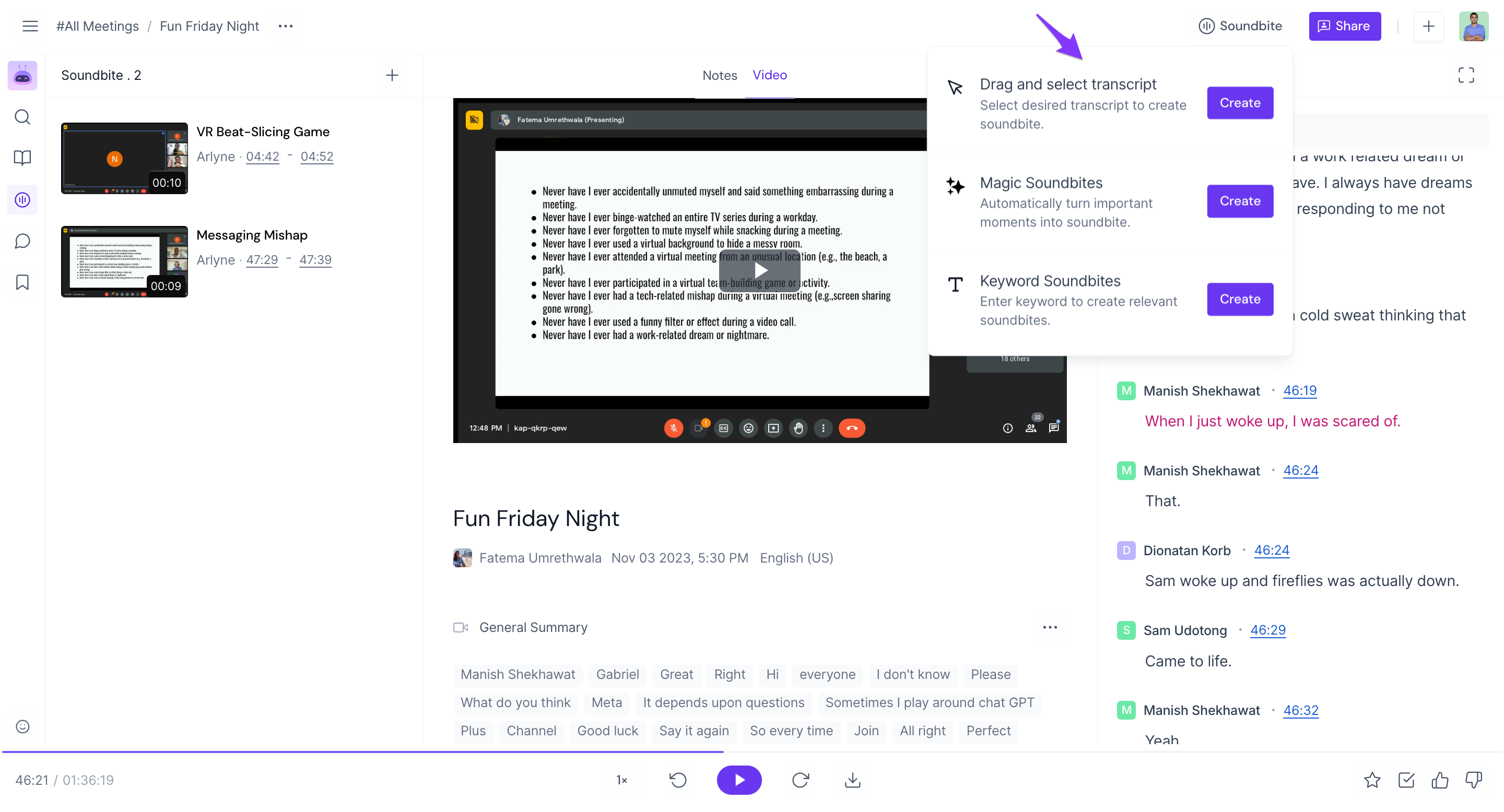 Whenever you’re inside a meeting, you can view Soundbites by clicking the Soundbite icon on the right.