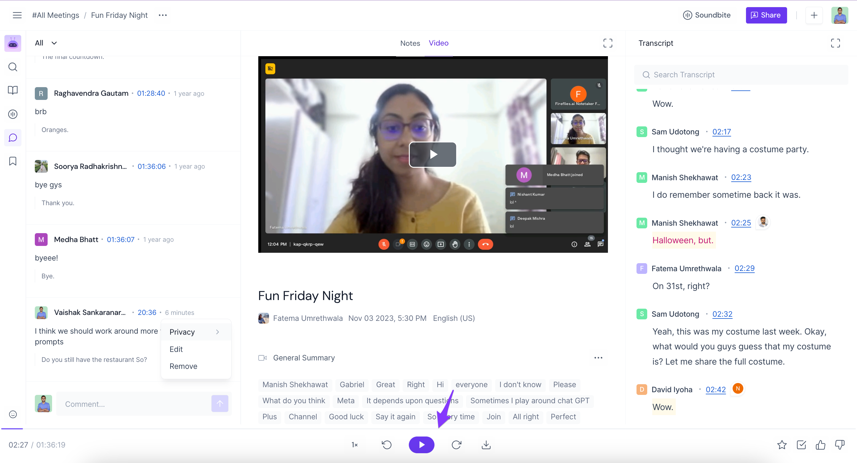 Related: How to use Fireflies threads to add notes or comments in your meetings?