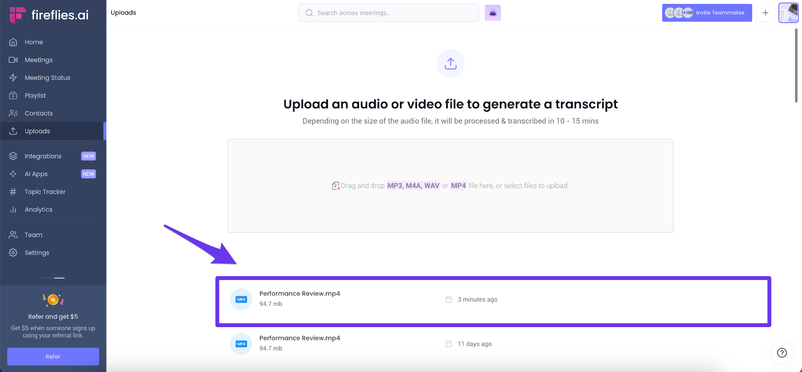 Related: Learn about the Uploads feature in Fireflies