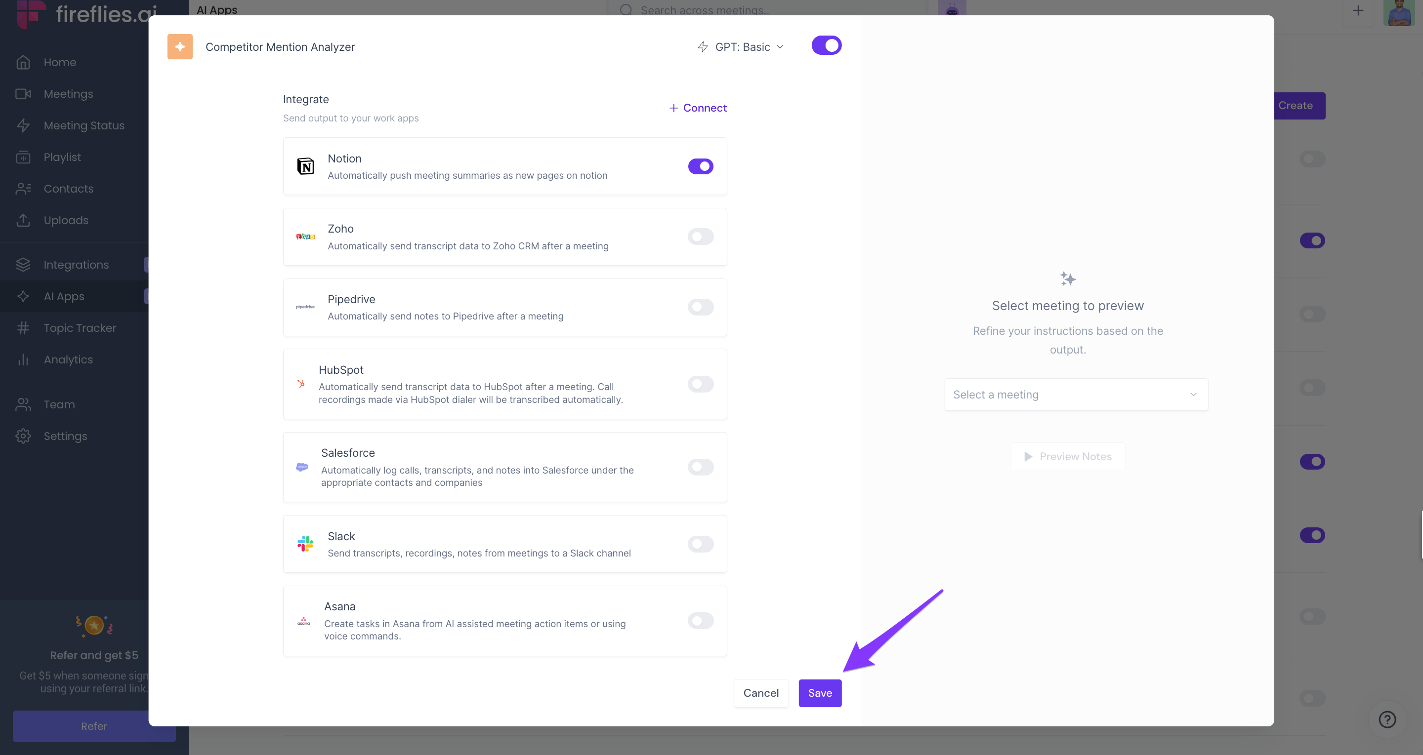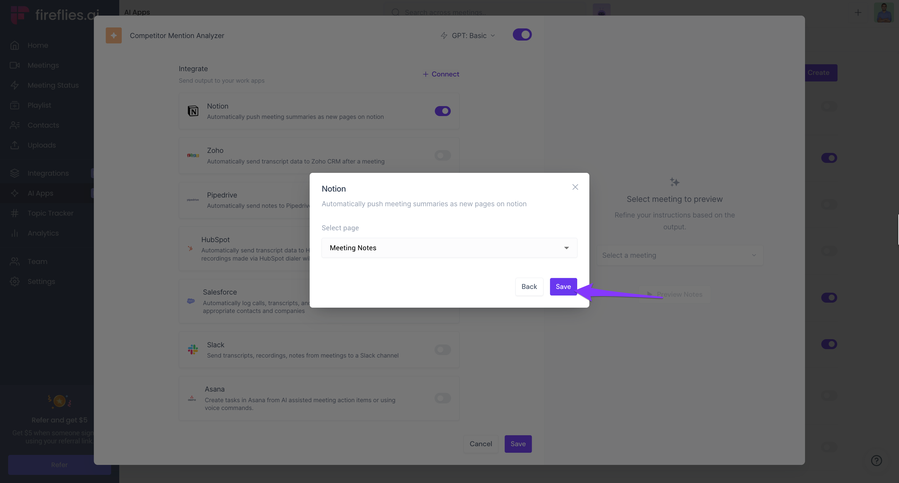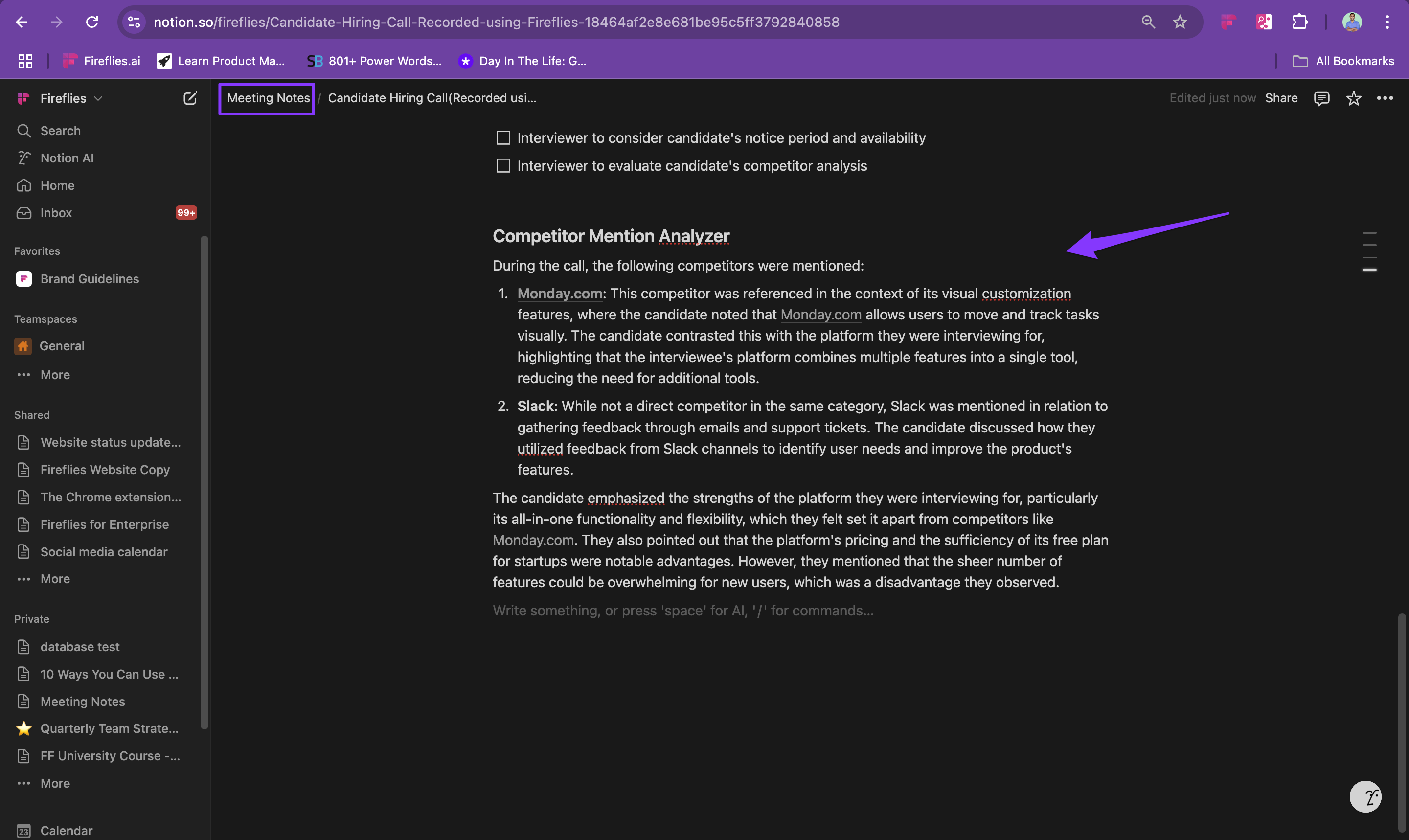 - Fireflies will now share the AI Skill output to the desired Notion page.