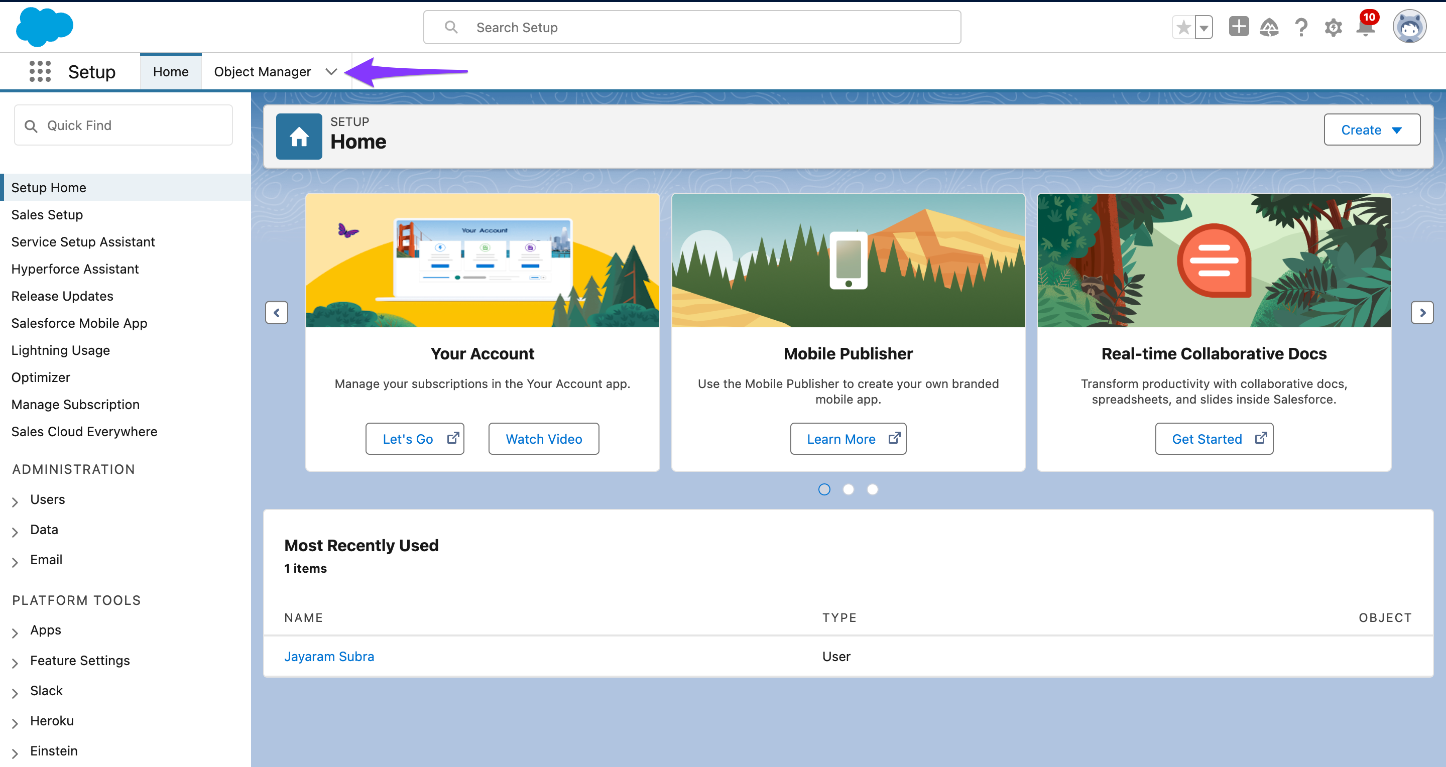 - Click on the Object Manager.
